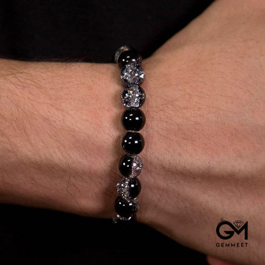 Transparent Black Contrast Beaded Mens Bracelet