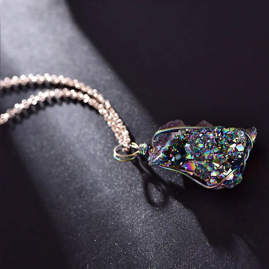 Natural Labradorite Irregular Stone Geode Necklace