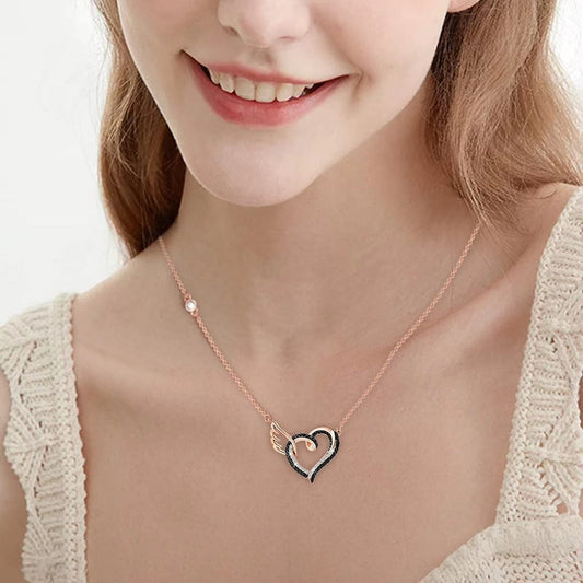 "My Only" - Skull Couple Inlaid with Heart Ruby Necklace