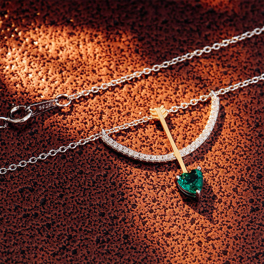 Hollow Cupid's Arrow Heart Cut Emerald Pendant Chain