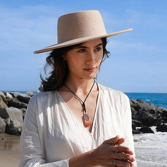 Sunset Frisbee Beaded Natural Agate Clavicle Necklace