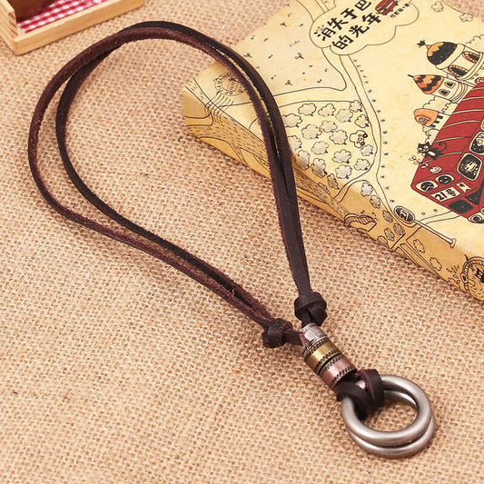 Double Circle Alloy Hardware Vintage Leather Necklace