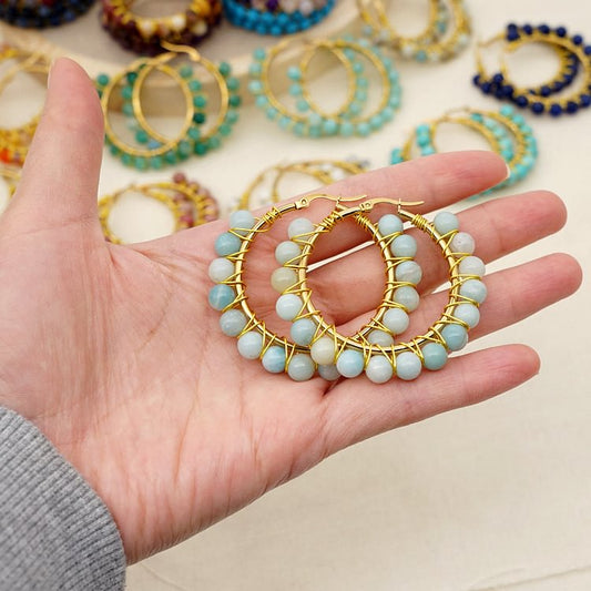 Boho Natural Crystal Beads Large Hoop Earrings