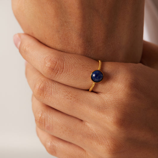 Lapis Lazuli 18k Gold Plated Stainless Steel Ring