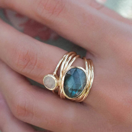 Labrador Stone and Moonstone Ring