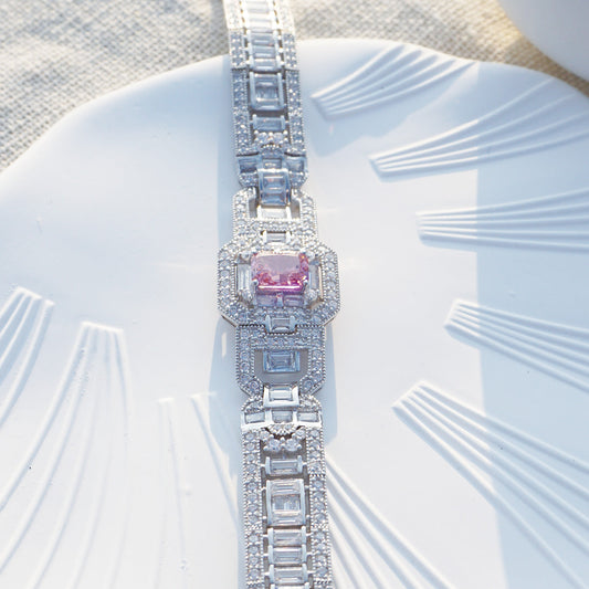 White Gold Square Pink Sapphire Full Stones Bracelet
