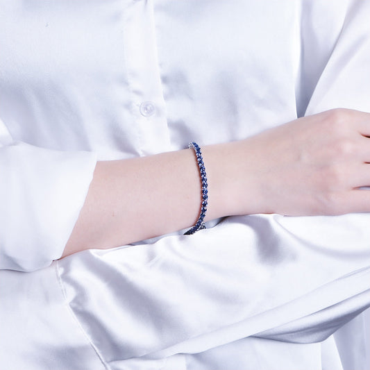 Sterling Silver Round Cut Blue Sapphire Tennis Bracelet