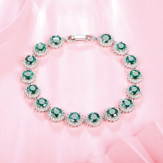 Sterling Silver Round Cut Emerald Gem Retro Bracelet with Worldwide Setting Stones