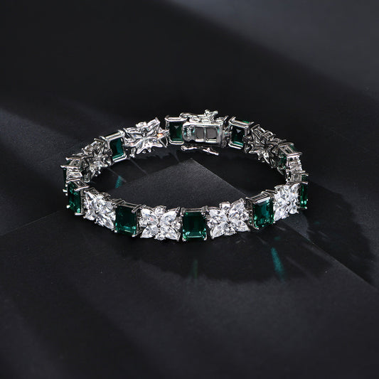 White Gold Square Emerald Gem Tennis Bracelet
