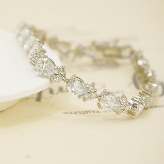 White Gold Prong Setting Pear Shape Stones Plain Bracelet