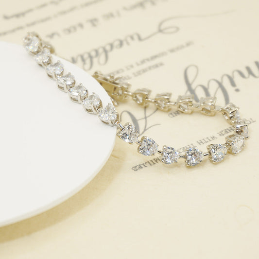 White Gold Heart Cut Stones Plain Bracelet