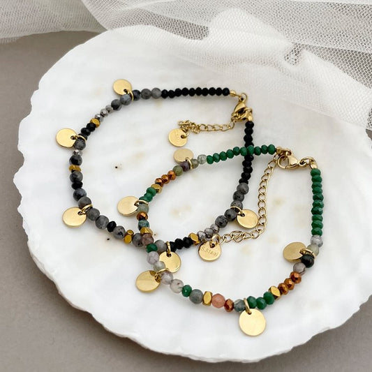 Natural Stone Beaded Titanium Disc Charm Bracelet