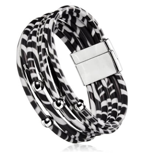 Alloy Leopard Print Magnet Buckle Leather Strap Bracelet