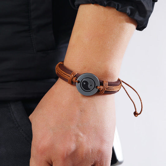 Retro Simple Hand-woven Yin Yang Tai Chi Gossip Cowhide Bracelet