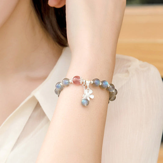 Moonstone Strawberry Quartz Flower Healing Charm Bracelet