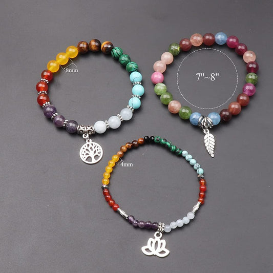 Bohemia Color Stones Tree of Life Lotus Leaf Symbol Bracelet