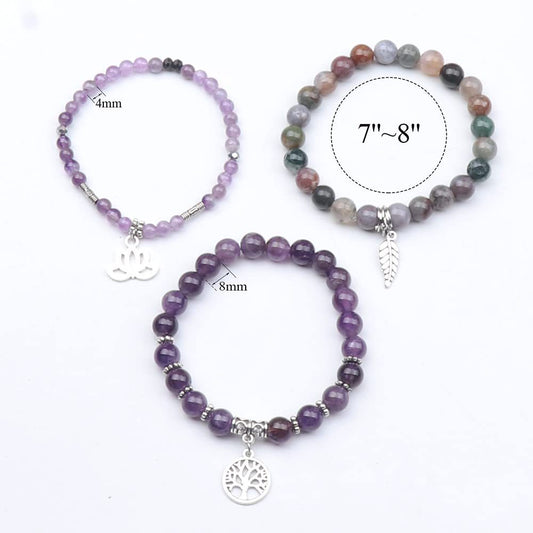 Bohemia Amethyst Tree of Life Lotus Leaf Symbol Bracelet