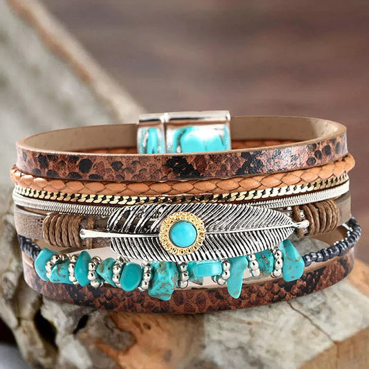 Brown Vintage Turquoise Multi-layer Leather Bracelet