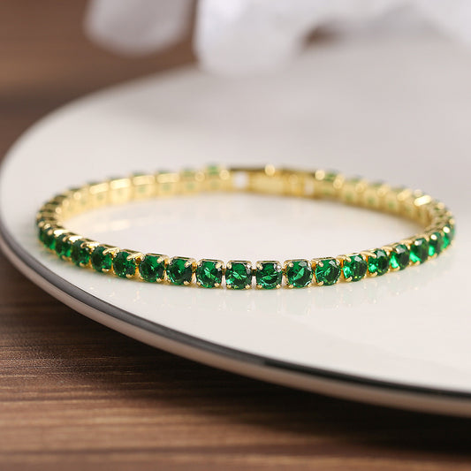 Easy Bukcle Green Stone Tennis Bracelet