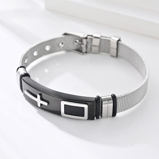 Stainless Steel Woven Mesh Strap Cross Trendy Bracelet