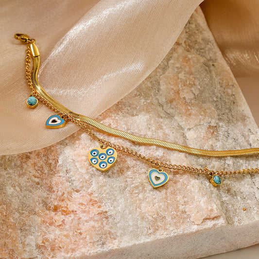 Evil Eye Pendant Layers Bracelet