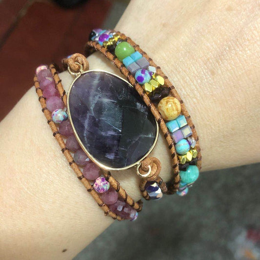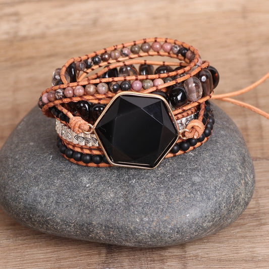Bohemian Multi-Layered Decorative Hexagonal Obsidian Bracelet