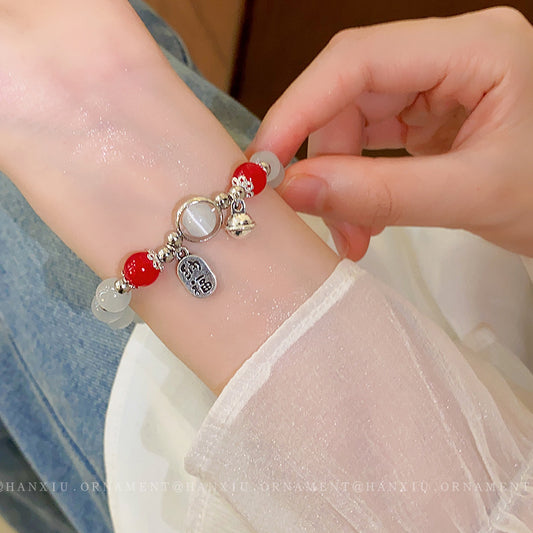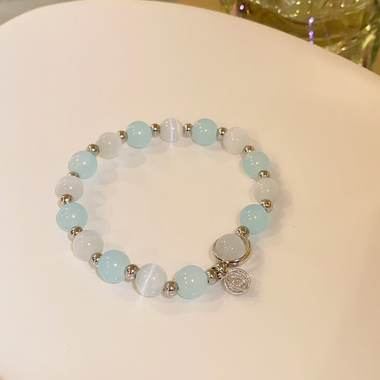 Beaded and Diamond Pendant with Adjustable Alloy Bracelet