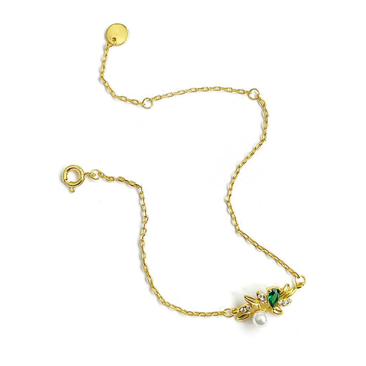 Imitation Pearl Design Green Zircon Simple Bracelet