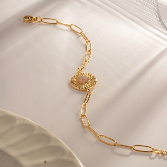 Round Stainless Steel Bracelet with Oval Stone Cross