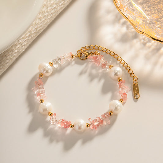 Pink Gravel Fresh Water Pearl Stainless Steel Bracelet