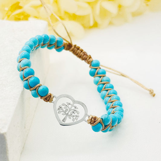 Turquoise Peach Heart Tree Of Life Palms Hand-Woven Bracelet