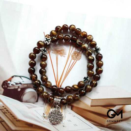 Tiger Eye Cross Pendant Rosary Bracelet