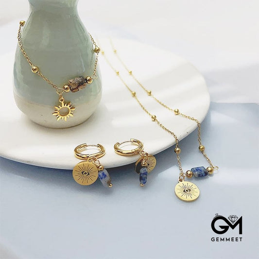 Natural Blue Sodalite Evil Eye Bracelet Earring Necklace