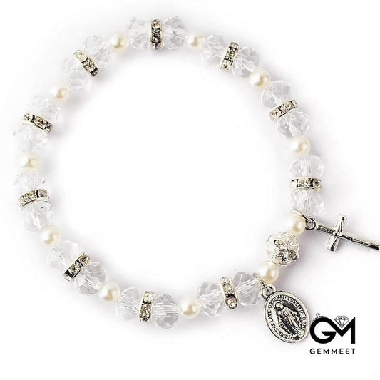 Acrylic Crystal Stretch Wire Alloy Christianity Cross Bracelet