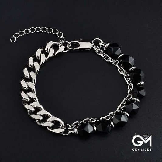 Faceted Black Onyx Tiger Eye Stainless Steel Bracelet