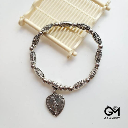 8mm Golden Angel Christianity Pendant Rosary Bead Bracelet