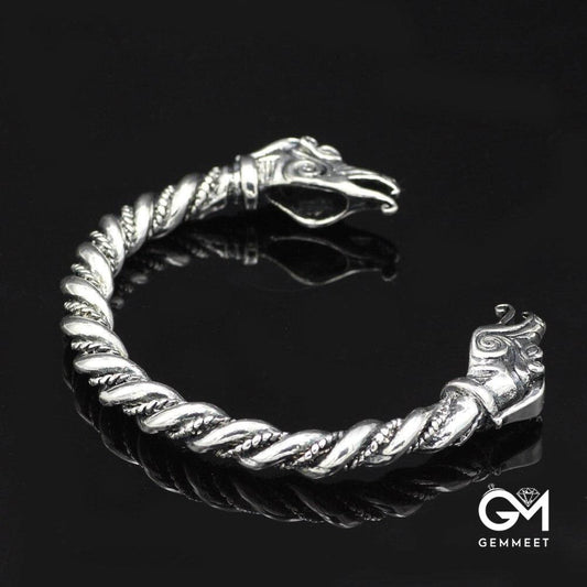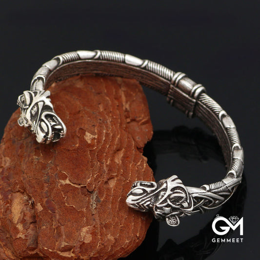 Titanium Steel Vintage Viking Wolf Head Bracelet