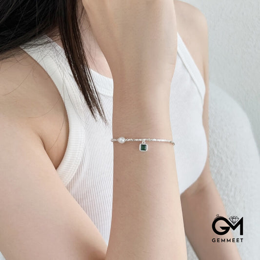 S925 Sterling Silver Pearl Square Green Zircon Bracelet