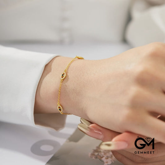 S925 Sterling Silver White Blue Zircon Devil's Eye Bracelet