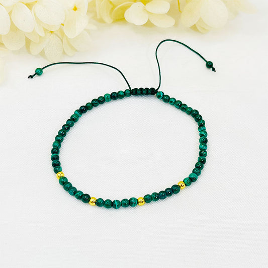 Flower Green Stone Woven Bead Bracelet
