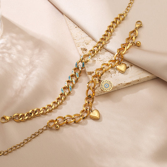 Evil Eye & Heart Pendant Rope Chain Bracelet