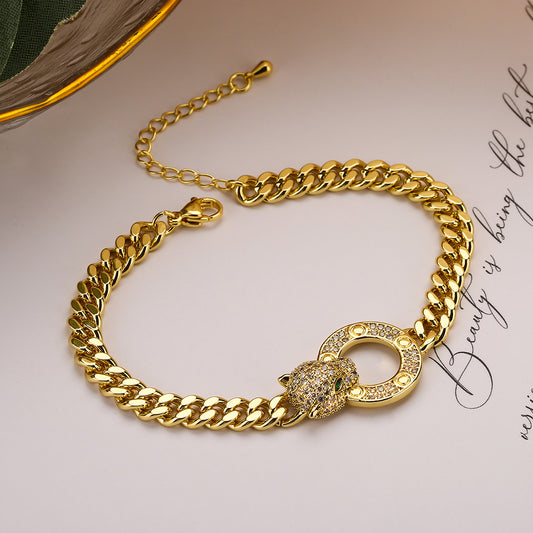 Golden Leopard Cuban Chain Bracelet