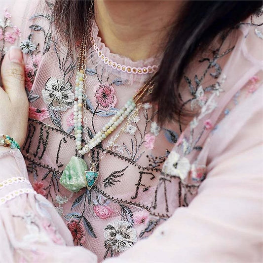 Amazonite Pendant Double Chain Necklace