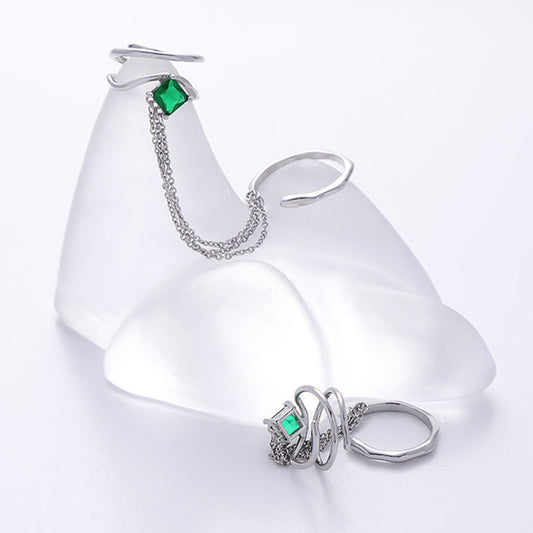 Double Link Chain Sweet Cool Posh Green Gemstone Ring