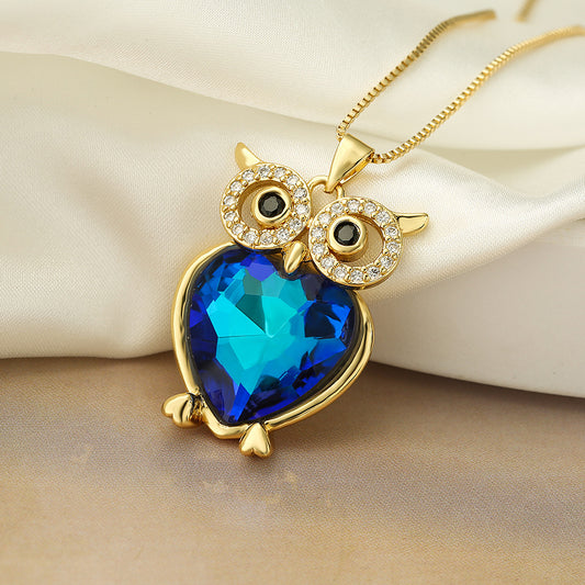 Hollow Owl Heart Shape Pendant Chain Necklace