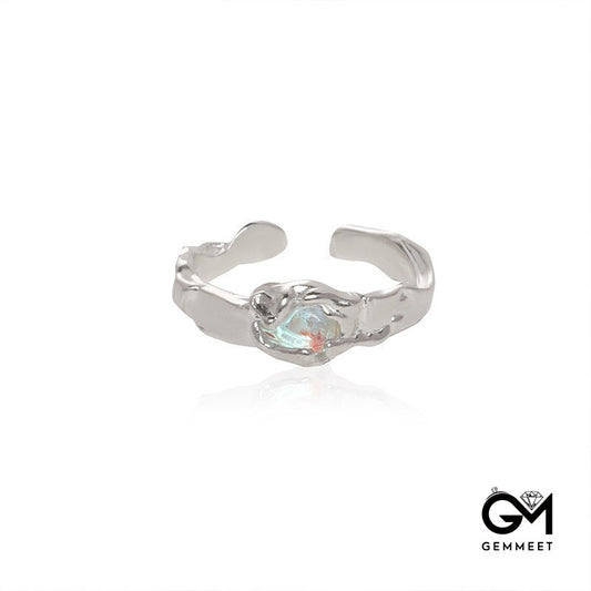 Opal Pink Heart Zircon Open Chain Shape Ring