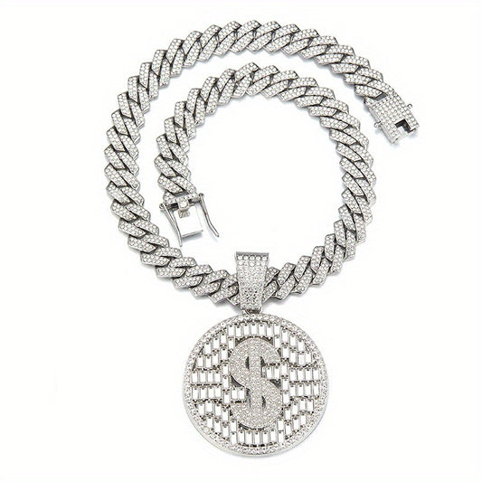 Hip-hop Round Pendant Necklace, Cuban Chain Necklace