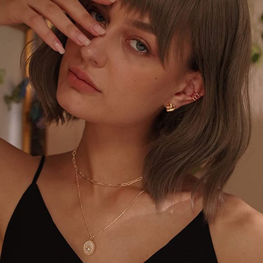 Evil Eye Hamsa Gold Color Layered Chain Necklace