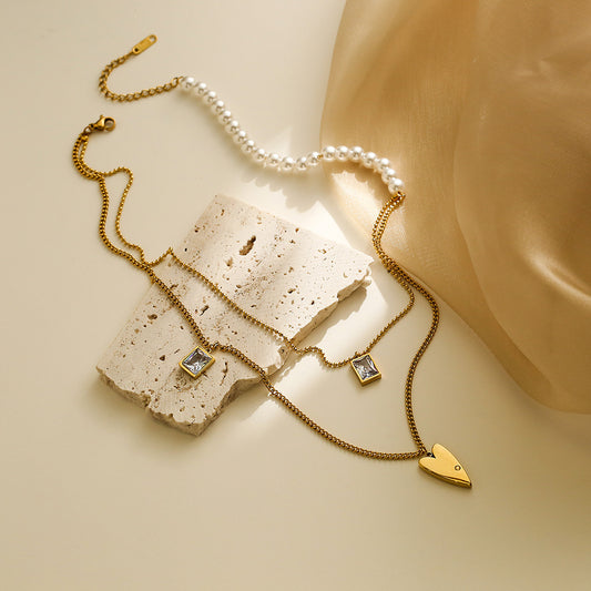 Cute Heart Shape Pendant Pearl Chain Necklace