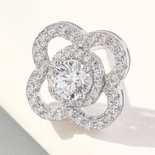 White Gold Four Leaf Petal Full Stones Moissanite Stud Earrings